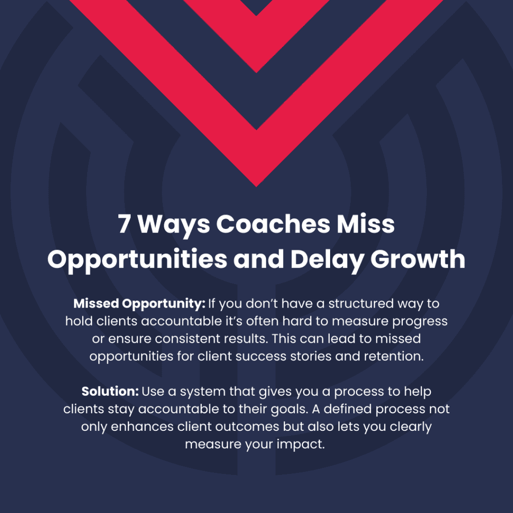 Missed Opportunity: If you don’t have a structured way to hold clients accountable it’s often hard to measure progress or ensure consistent results. This can lead to missed opportunities for client success stories and retention.